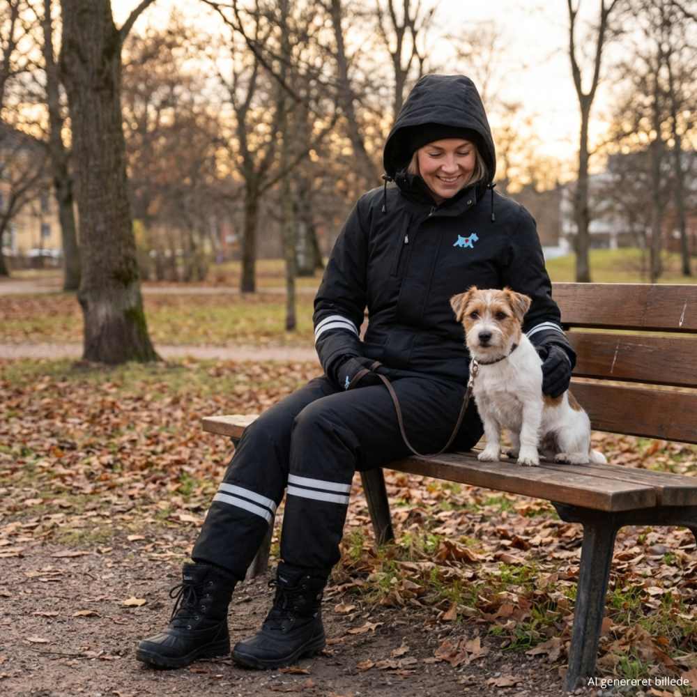 Lyngsøe Winter heldragt er fyldt med praktiske funktioner: En fast hætte med snøre, tovejs lynlås med stormklap, bryst- og sidelommer med lynlåse samt en justerbar talje. Elastiske stormmanchetter på ærmer og ankler giver en tæt og behagelig pasform, mens de foldbare reflekser på ærmer og ben sikrer øget synlighed i mørket.